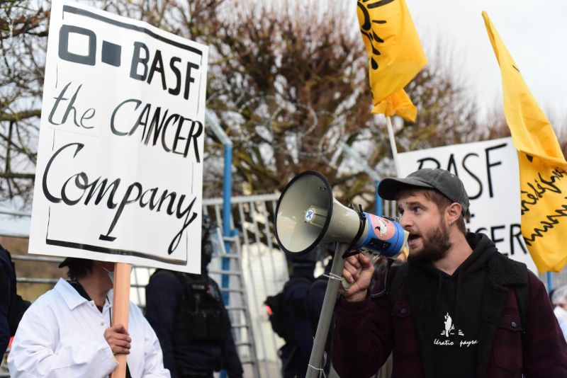 Mise à l'arrêt du site de production de pesticides BASF par plus de 500 paysannes et paysans, malades et soutiens