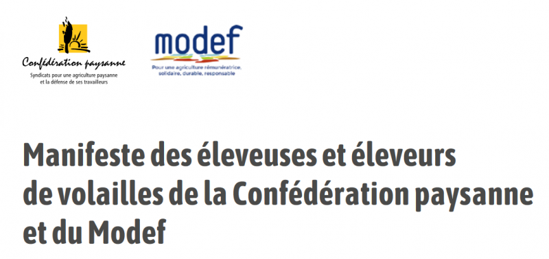 Manifeste des éleveurs.euses de volailles de la Confédération paysanne et du Modef